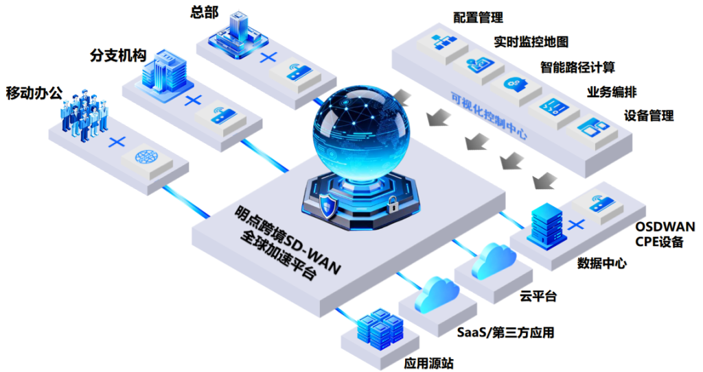 可实现各分支间高效互联。通过优化流量路径,确保视频会议、文件共享、ERP系统等应用低延迟访问。