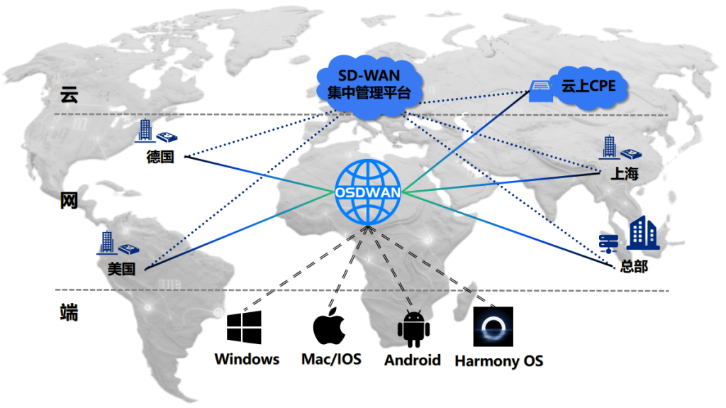 SD-WAN的中文全称是软件定义广域网(Software-Defined Wide Area Network)。